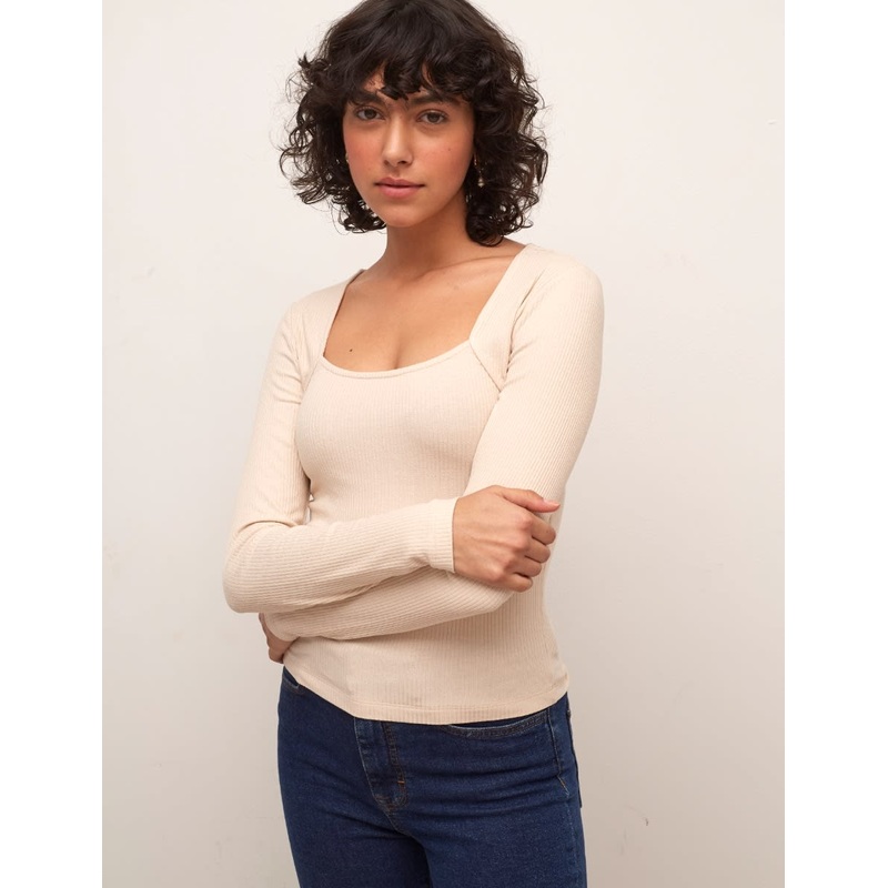 Every wardrobe needs classic staples that work well alone or when paired with additional pieces, and this long sleeve top is no exception. The pink top has incredible stretch and a trendy square neckline, too.