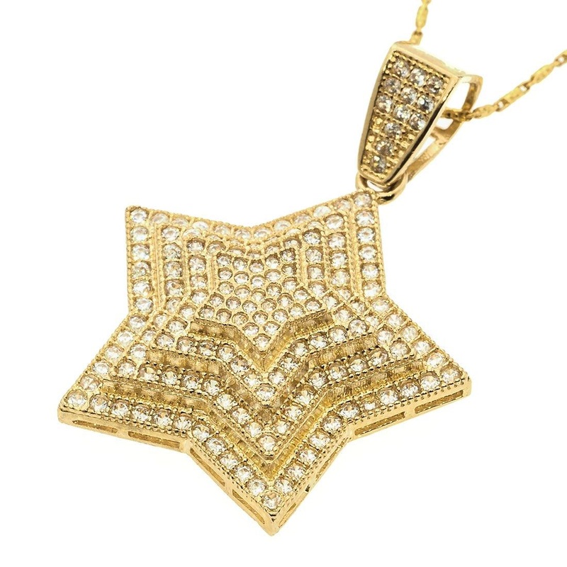 Pendant | Star 14K Gold & Cubic ZirconiaPRODUCT DETAILSMaterial: 100% Real Gold 14KPendant size 26x26mmWeightApproximately 6.5GramsFINANCING AVAILABLEFREE SHIPPING PaymentVISA, MasterCard, American Express, or Discover Other Payment MethodsCheck,Money Orde
