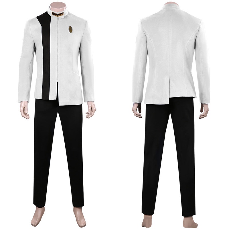 Star Trek: Discovery S4 Cosplay Costume White Men Uniform Outfits Halloween Carnival SuitMaterial: Knitted Cloth + Patent leather + Woolen FabricPackage included: Brooch + Pants + Top
