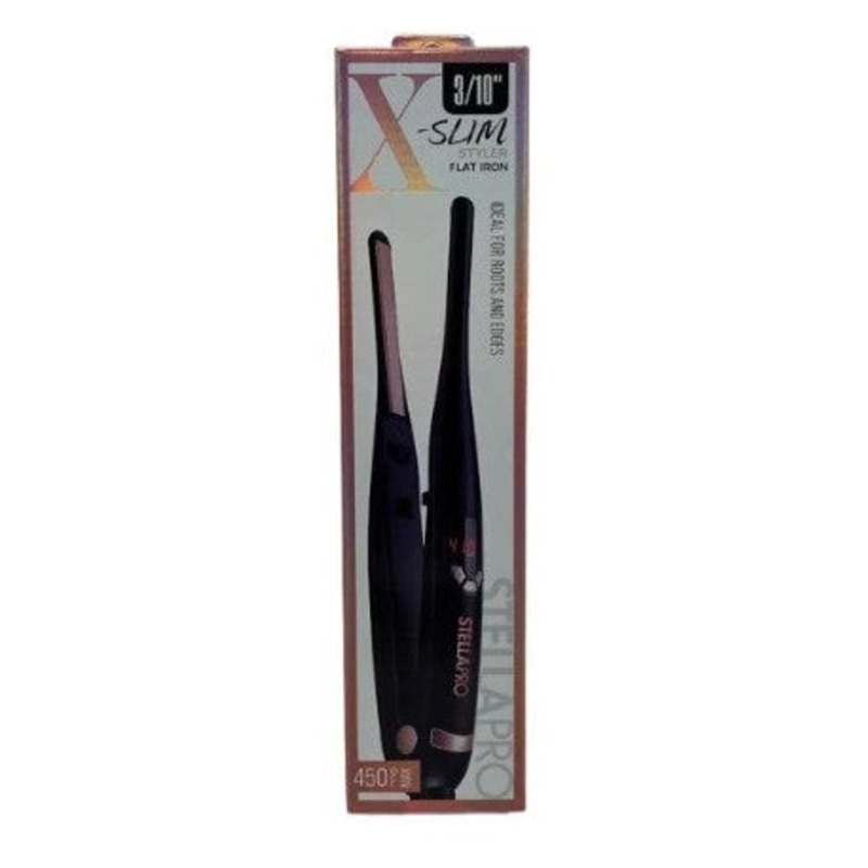 Introducing the STELLAPRO X-SLIM STYLER FLAT IRON 3/10" - an ultra thin flat iron that heats to 450F in 60 seconds, perfect for styling roots and edges. Its ceramic tourmaline heating plates evenly distribute heat to prevent damage and maintain healthy hai