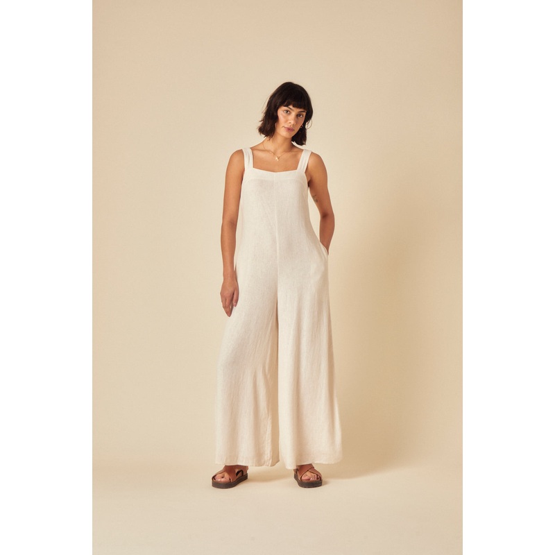 Youve found the one. Coming in a versatile stone shade, our jumpsuit is all about ease, featuring a relaxed wide-leg fit,, and square neckline. Just add sandals and a crossbody bag. Square neck Sleeveless Wide leg cut that skims the body Designed to be sem
