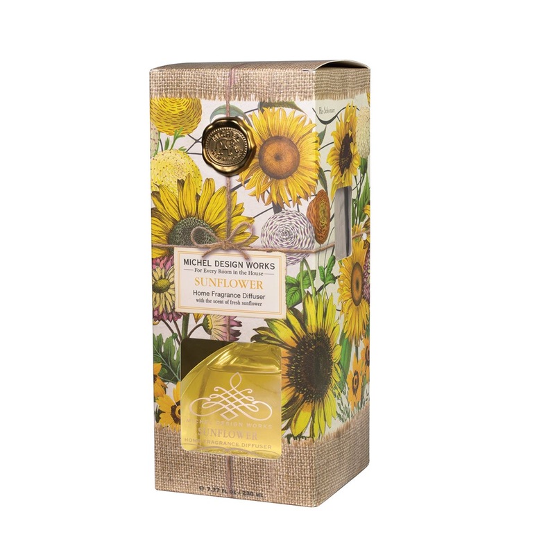 DESCRIPTIONEight reeds and an elegant glass decanter are packed into a window box for easy viewing.DETAILSFragrance oil: 7.8 fl. oz. / 230 ml liquid. Box Size: 3.75 x 3.75 x 9.25" / 9.6 x 9.6 x 23.5 cm.SCENTFresh sunflower with touches of citrus, ripe frui