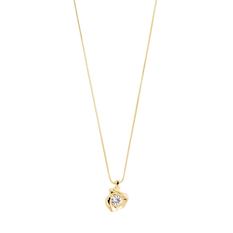 Chase sunsets, find beauty, with the gold-plated necklace from ‘s SUNSET series. A sleek box chain with a pendant featuring a sparkling Preciosa crystal set in a nature-inspired gold-plated setting. Your new go-to piece when you want to accessorize a classic style. Let the sunshine follow you everywhere and take joy in knowing that the necklace is made from 95% recycled materials, keeping our environment in mind. The chain comes in waterproof quality and measures 40 cm with an additional 9 cm extender chain so you can adjust it to your desired length.