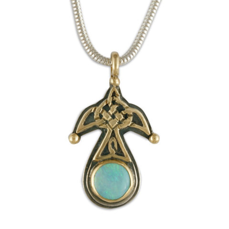 This Celtic Knot Swallow pendant is made of 14K Gold over Sterling Silver with a 6mm Opal. (color of Opals varies)