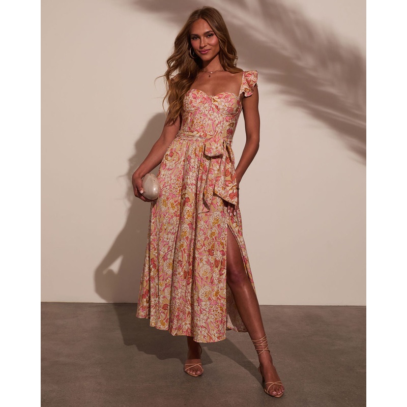 When your vibe is romance with a little edge, the Sweet Escape Corset Floral Maxi Dress gets it just right. It all starts with a dreamy jersey fabric that moves with you, paired with a lightly padded underwire bust and boned bodice for that snatched-but-so