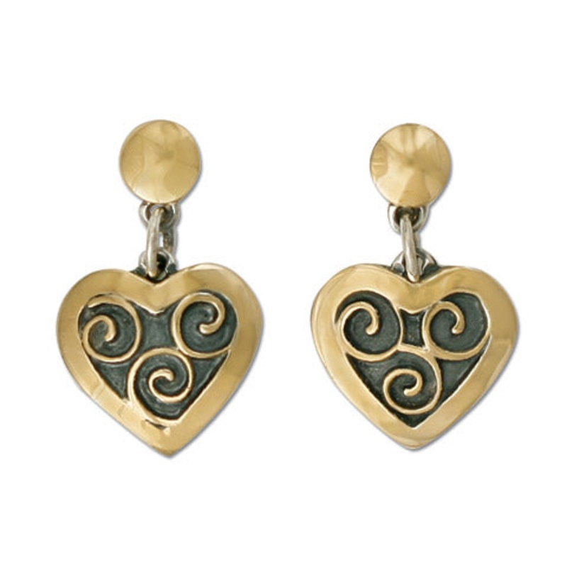 Helen Chantler, our lead designer, created these heart earrings for Valentine's day, 2014. Our Celtic knot hearts represent eternal love. They are entirely handmade in our Santa Fe, studio with 100% recycled precious metal. 14K Gold over SilverDimensions: