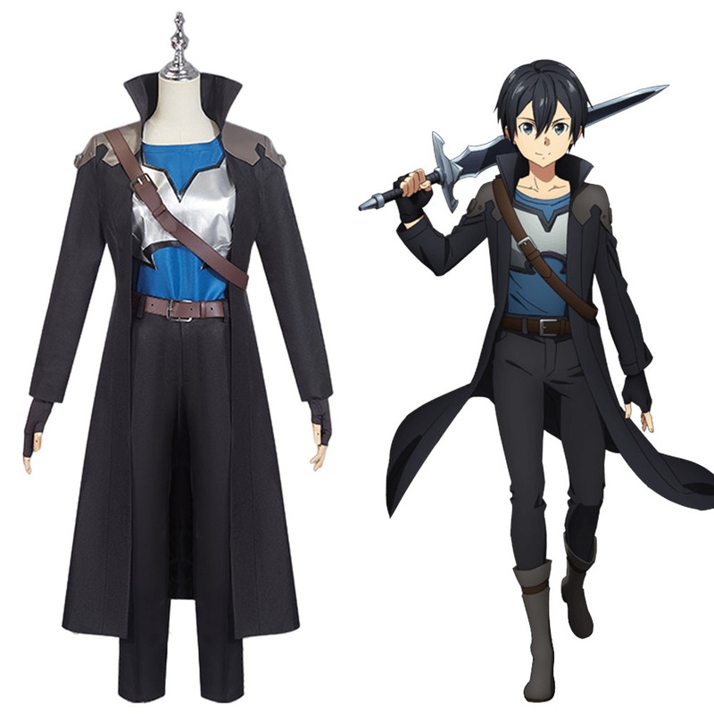 Sword Art Online SAO Kirigaya Kazuto Halloween Carnival Suit Cosplay Costume Outfits Material: Uniform Cloth Package included: Top + Coat + Pants + Belt + Back Strap + Gloves + VestSize(Unit:cm)HeightBustWaistHipShoulder WidthS165-17082-8572-7584-8743-44M1