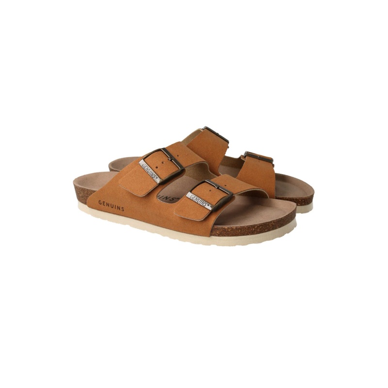 Sunshine ready. These tan double-strap sandals from Genuins feature metal buckle detail and a laid-back feel that works for every day. By Genuins Double buckle straps