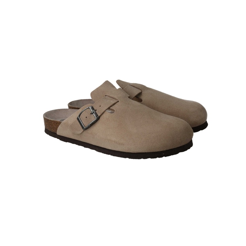 Slip on and go. Coming in taupe, these mules from Genuins feature a buckled strap and comfy sole that are perfect for everyday wear. By Genuins Adjustable strap