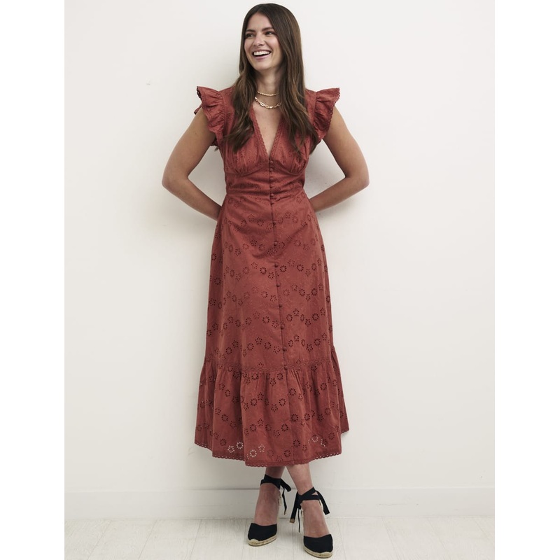 Nothing says summer quite like a broderie dress. Meet Azalia: a ruffle trimmed midaxi lined with scallop lace. We imagine her pottering around sunny market towns with a straw bag slung over your arm. That said, theres nothing stopping you from dressing her