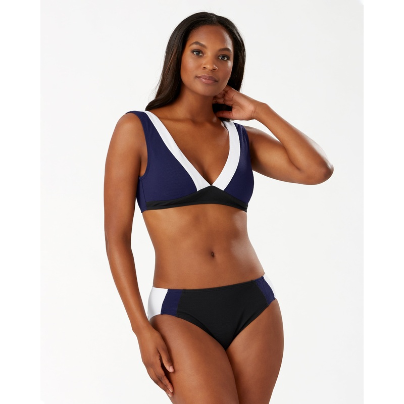 With a powerful navy and white design, showcase your most confident look with this bikini top. With the right amount of lift and support, you’ll be ready for your next all-day affair by the seashore.