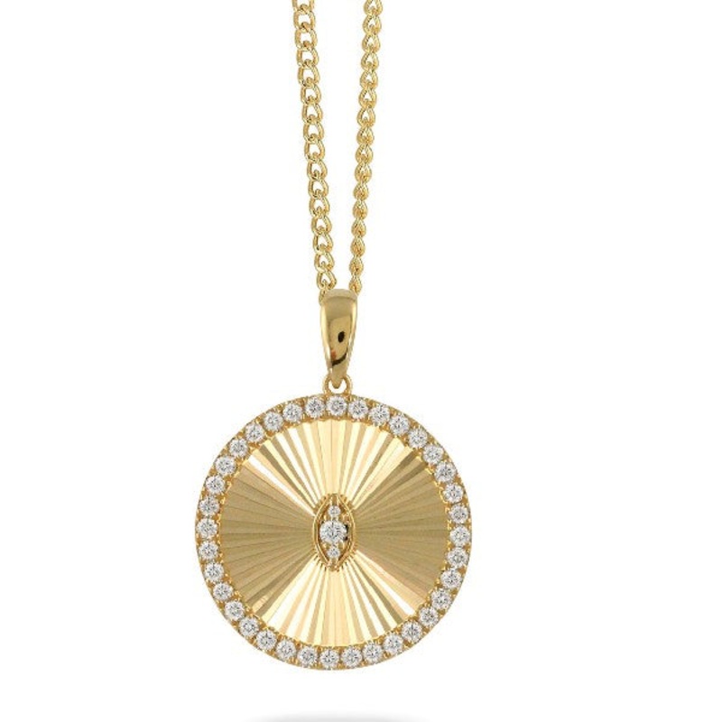 18K yellow gold textured diamond pendant 0.65CTTW. Chain sold separately.