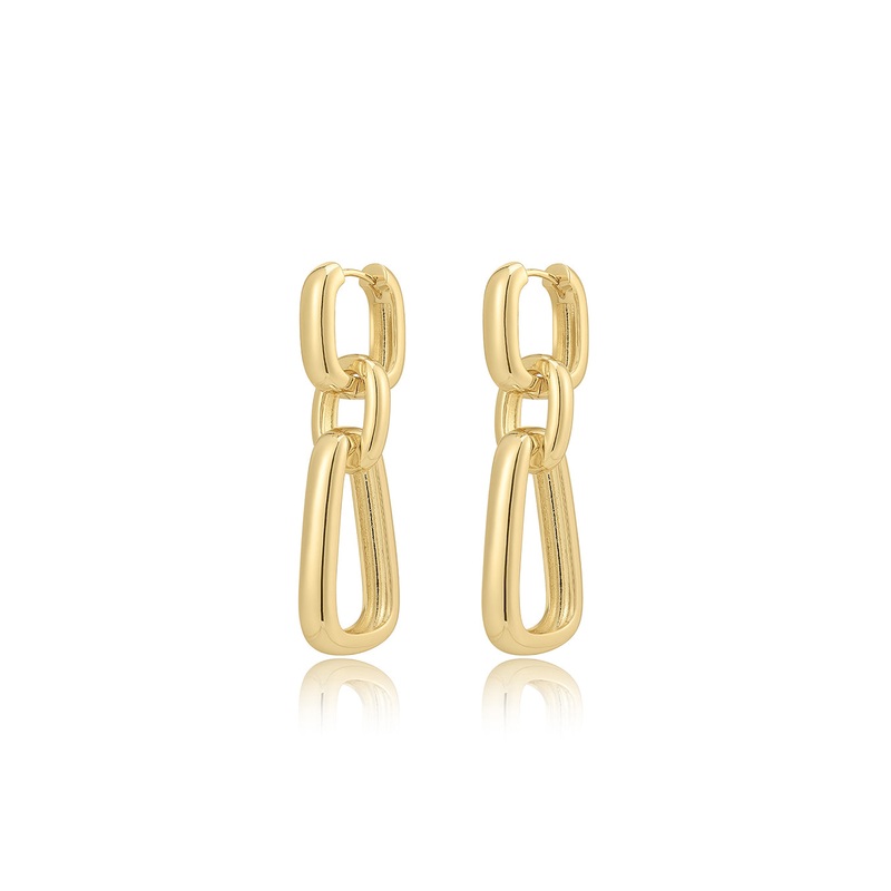 Pair of metal chain link huggies with a small and large link charmSold as a pair for pierced earsCharm is removableTotal length of earring is 45mmEach earring weighs 12.93 g per pairMade from BrassPlated Gold or SilverPosts are made from surgical steel so