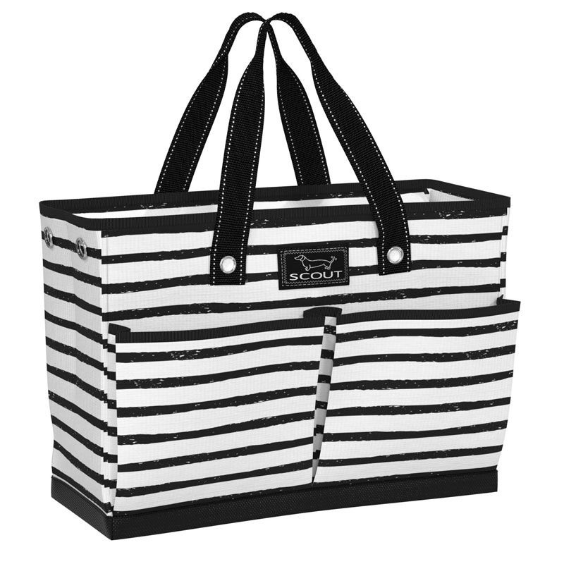 All-weather woven fabric is water resistant and wipes clean Four exterior pockets, two flat and two pleated pockets Max-capacity breakaway zipper offers option of open-top or zip-top use Stable, burst-proof bottom Interior zipper pocket for safe keeping 18.5″W x 14″H x 8.5″D