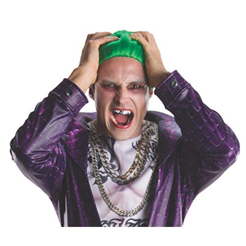 Officially licensed suicide squad movie costume accessory, look for dc trademark on label to help assure you’ve received authentic safety tested item. Suicide squad joker costume teeth. Designed to fit adults and teens. Look for additional suicide squad costumes from Rubie’s, including harley quinn, deadshot, katana, and killer croc. Family-owned, family-focused, and based in the U.S.A. Since 1951, Rubie’s has classic and licensed costumes and accessories in sizes and styles for your entire family.