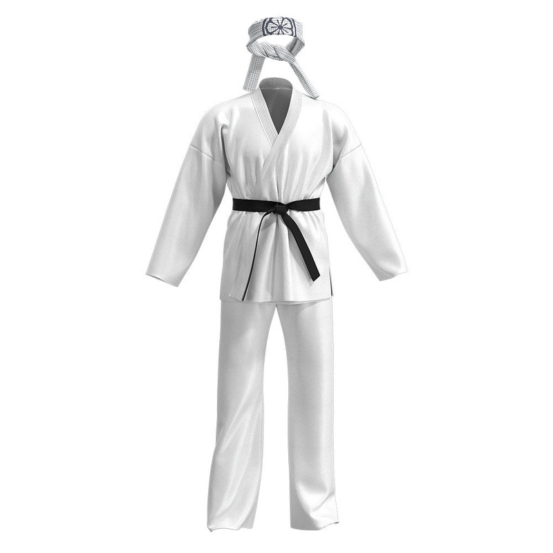 The Karate Kid - Daniel LaRusso Halloween Carnival Suit Cosplay Costume Karate Uniform Outfits Material: Uniform Cloth Package included: Top + Pants + Belt + HeadbandSize(Unit:cm)Shirt LengthChestShoulder WidthPants LengthHip1606810244971061707010645100110