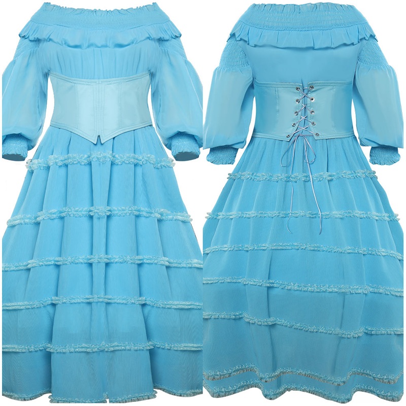 The Little Mermaid Ariel Ereza Blue Dress Kids Children Girls Halloween Cosplay CostumeMaterialThickiy Ronior Fabric + Milk Protein Fiber + Pearl Chiffon + LiningPackage included: Headband + belt + dressSize chartSizeBustcmWaistcmHeightcm100595590-10011063