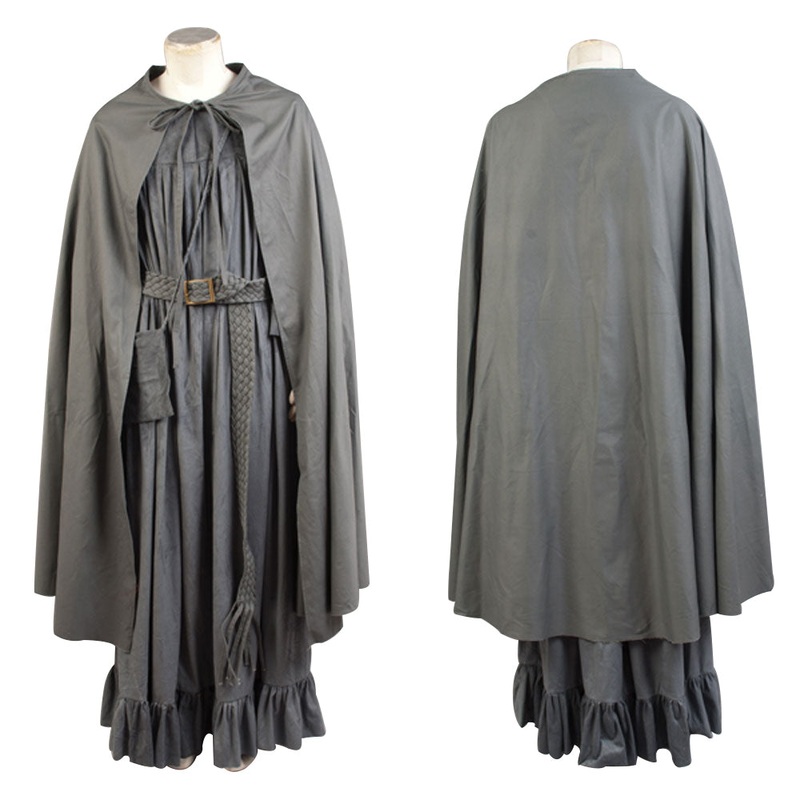 The Lord of the Rings Grey Cape Cosplay CostumeMovie:The Lord Of The RingsIncluding: Cape, skirt, belt, bagFabric:suede fabric