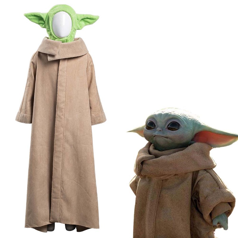 The Mando Baby Yoda Halloween Carnival Suit Cosplay Costume Robe Hat Outfits MaterialFaux Cashmere Package included: Coat + HatSize/cmChestShoulderWeight80CM462911KG90CM5130.512.5KG100CM563215KG110CM6133.517.5KG120CM663522.5KGSize(CM)HeightChestWaistSleeve