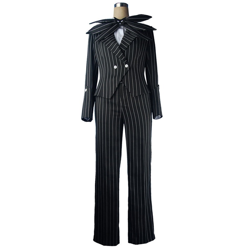 The Nightmare Before Christmas Jack Skellington Cosplay CostumeMovie: The Nightmare Before ChristmasCharacter: Jack SkellingtonFabric: Nylon taffeta, Uniform ClothIncluding: coat, pants, shirt, bow, gloves