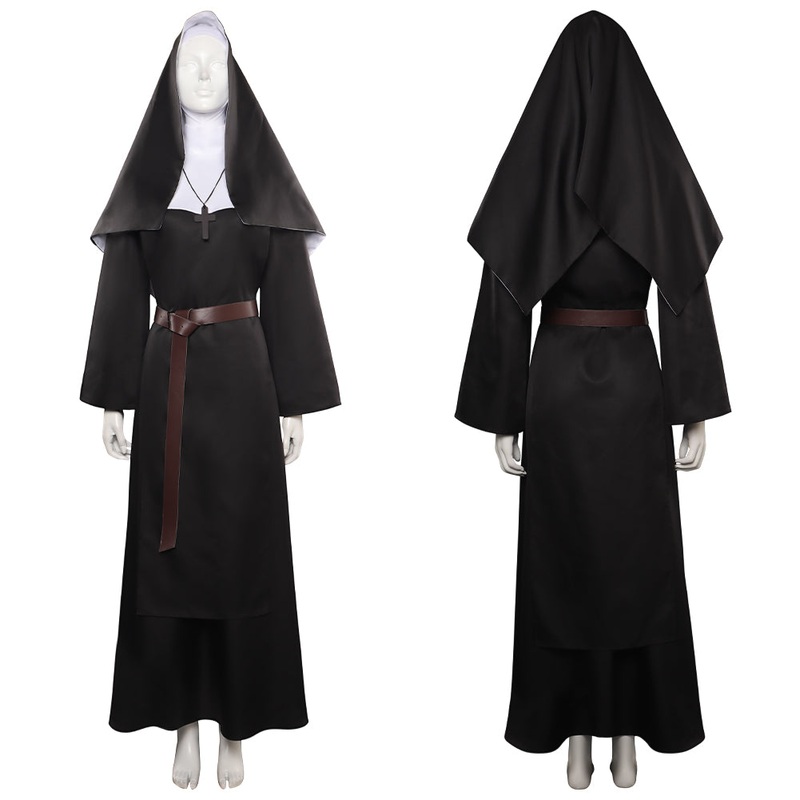 The Nun 2 The Nun Black Outfits Halloween Carnival Cosplay CostumeMaterialThickiy Ronior Fabric + Milk Protein Fiber + Faux LeatherPackage included: headgear + shawl + belt + dress