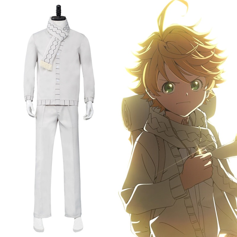 The Promised Neverland Season 2 Emma Halloween Carnival Suit Cosplay Costume Top Pants OutfitsMaterial: Lining + Uniform ClothPackage included: Pants + Scarf + Top