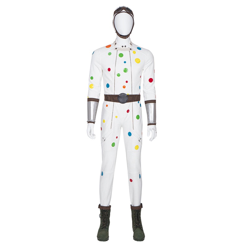 The Suicide Squad Polka-Dot Man Halloween Carnival Suit Cosplay Costume Dress OutfitsMaterial: Faux Leather + Knitted FabricPackage included: Belt + Glasses + Hat + Jumpsuit + Wristlet