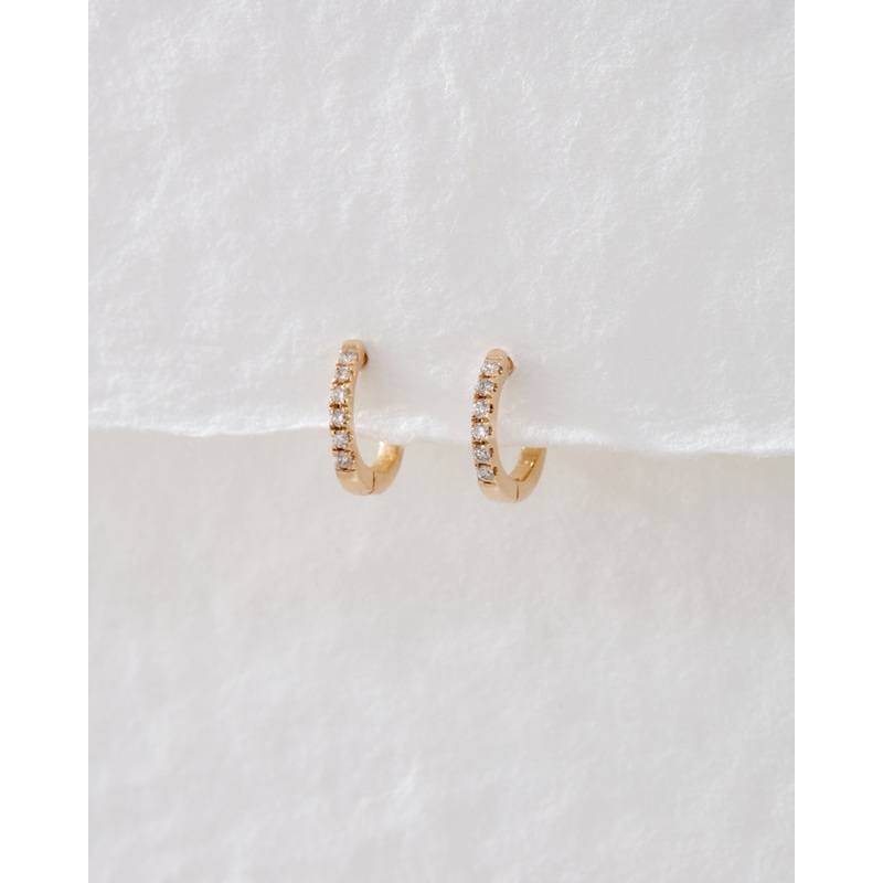 The perfect (and littlest) diamond huggies for your ear party stack. With a super small fit (9mm to be exact), these earrings are designed to fit snugly to the ear lobe- making them ideal for higher piercings and ensuring a comfortable fit.