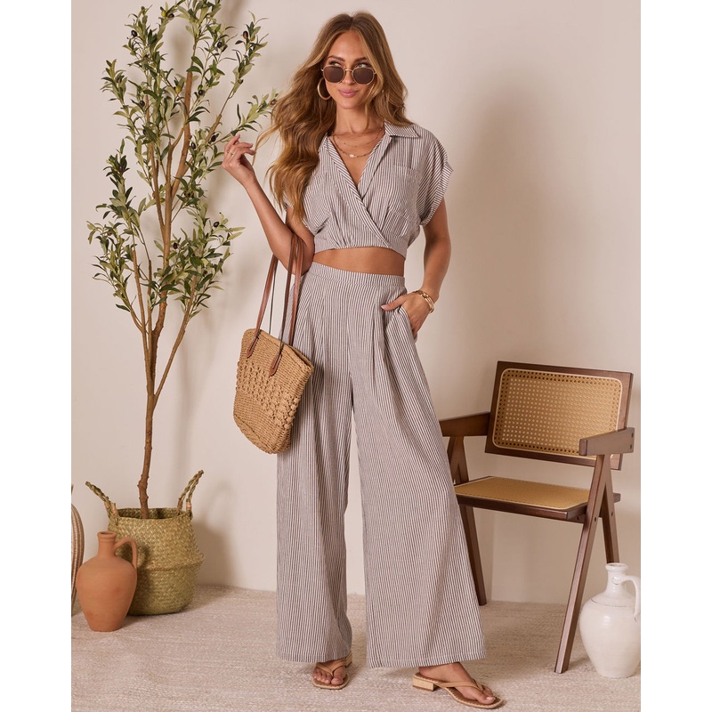 High riseElastic waistbandStripedSide pocketsRelaxed fit100% CottonRuns Large