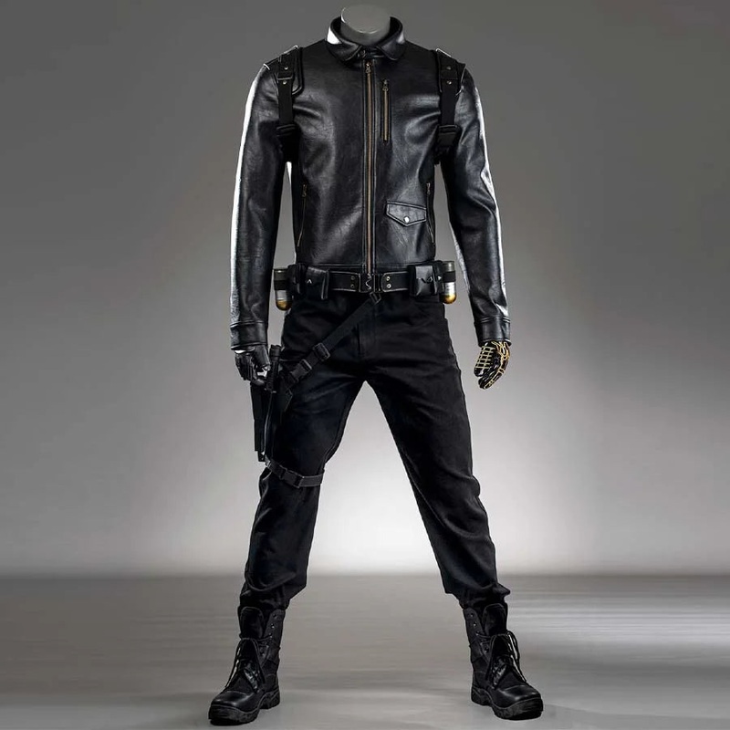 Join Discord Server: cosfunDescriptionSize ChartNote: Pls check item size chart and delivery date before ordering.Includes:Jacket, stretch undershirt, pants, belt assembly, leg pouch assembly, backpack assembly, gloveMaterials:PU leather, composite leather