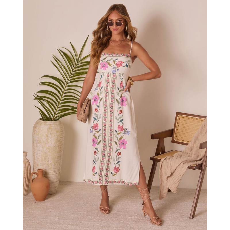 Breezy, beautiful, and just the right mix of romantic and refined, the Tidal Bloom Floral Maxi Dress is the perfect selection. As soon as you slip it on, its giving coastal romance, garden parties, and spontaneous getaways. The lightweight linen fabric fea