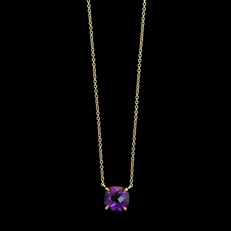 Tiffany & Co. 18K Yellow Gold Estate Amethyst Sparkler Pendant NecklaceThe pendantis set with one cushion cut amethyst measuring approx. 8.00x8.00mm,Length 16", with box.