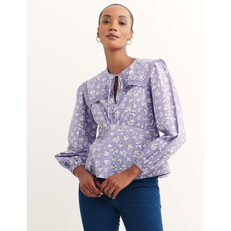 You're looking at your next wear-everywhere purchase. The Tinka top, complete with a beautiful floral print and a summer-ready light blue shade features a romantic frill collar as well as blouson sleeves. Pair with denim for a gorgeous update to your jeans