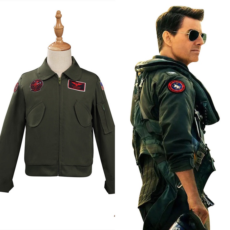 Top Gun: Maverick Cosplay Costume Halloween Carnival Suit for Kids ChildrenMaterial: Faux Leather + Thickiy Ronior Fabric + Faux Silk + Rib FabricPackage included: CoatSize chartSizeBustWaistHightXS595590-100S6359100-110M6763110-120L7167120-130XL7571130-14