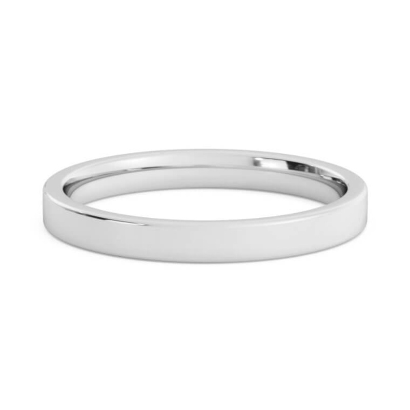 Ladies 2.5mm Flat Wedding Band In 18K White Gold Size 6