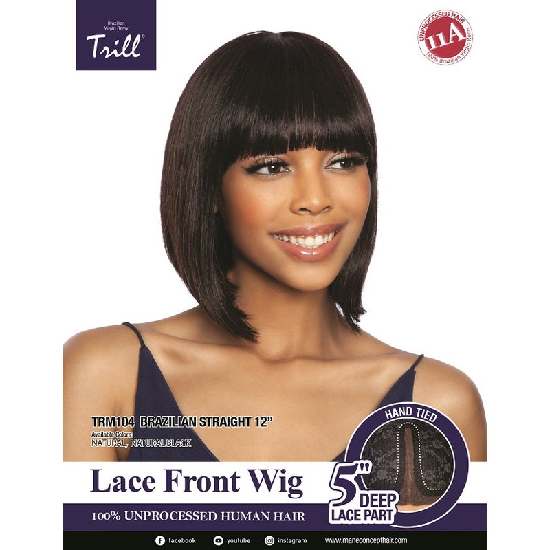 100% UNPROCESSED HUMAN HAIRLACE FRONT WIGMEDIUM STRAIGHT BOB WITH CHINA BANGS
