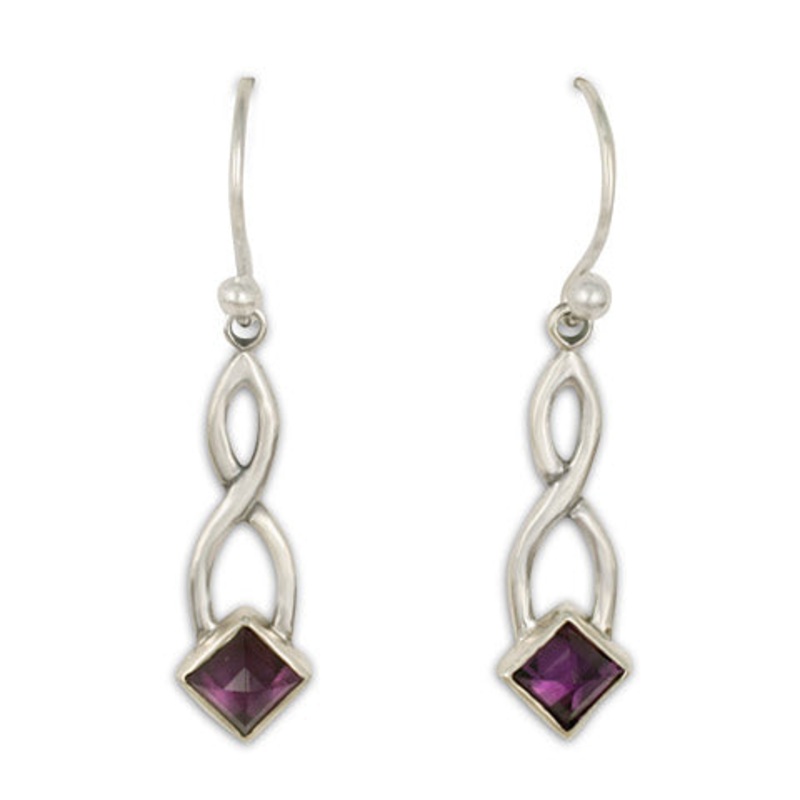 Two lines of silver crossing one another and joining at the diamond shaped gemstone symbolizes flow and balance anchored by the strong diamond form of stability. Pictured here with garnet.Sterling SilverDimensions: 1" Long x 5/16" WideDesignerMichelleTalle