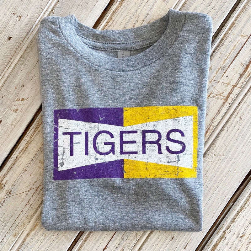 LSU Tigers Gameday tee. Kids Tee.Shade of grey tee varies depending on size.