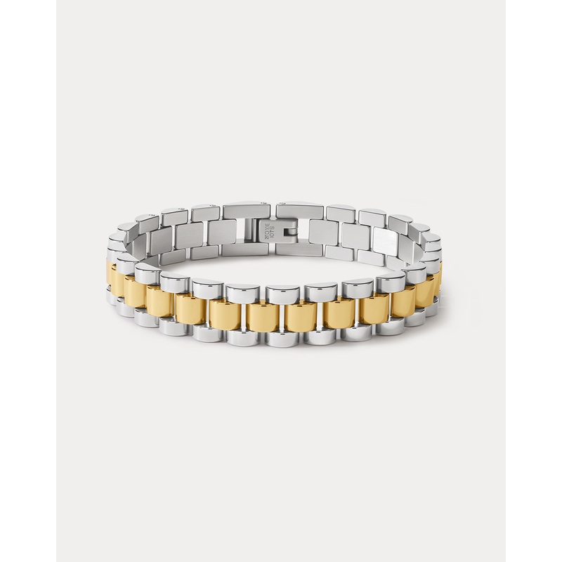 DetailsTwo-toned, brushed metal timepiece braceletBracelet is 0.4 (10mm) wideBracelet comes in 2 lengths: Regular (6.9") and XS (6.4")Metal foldover clasp closureAlso available as a ring1 year warrantyAll LuvAj.com orders are sent in Luv Aj branded gift bo