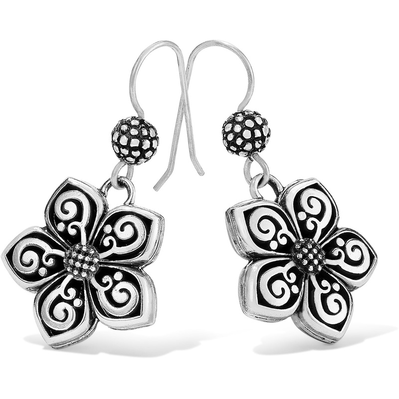The beauty of Bali in a delicate French wire earring. Silver petals spiral around hand-crafted granulated bead.Style: #JA6660Color: SilverType: French WireWidth: 3/4"Drop: 7/8"