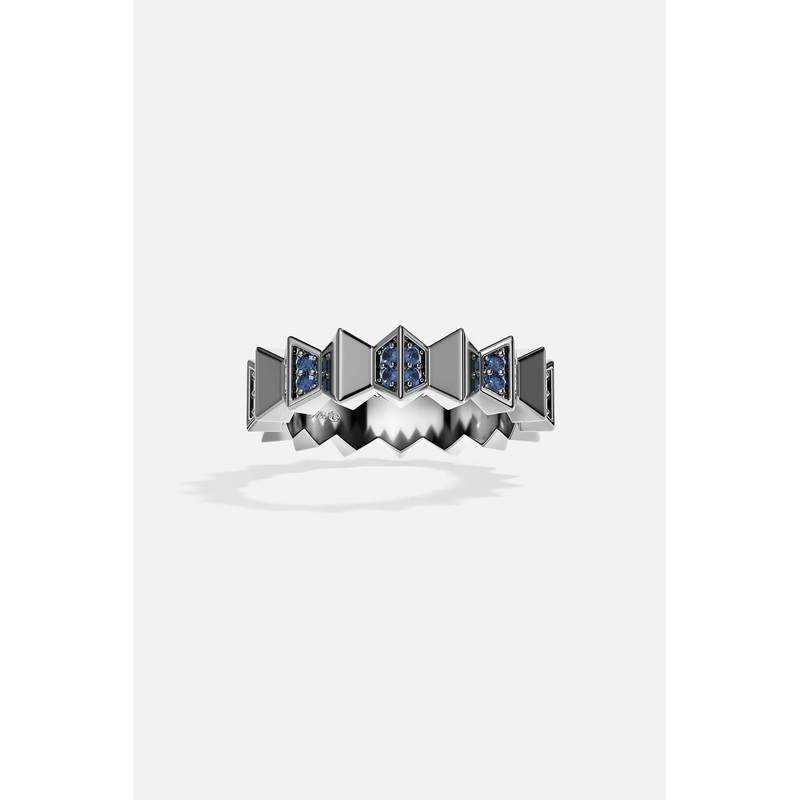 This unisex ring embodies the essence of versatility and is designed for stacking. They will seamlessly transition from day to night with style.All our products are handcrafted in our ateliersMaterial: Sterling silver, rutheniumStone: Blue cubic zirconiaCo