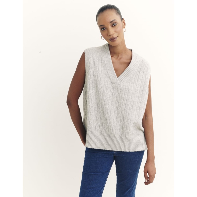 This oversized vest will ensure you beat the chill in style thanks to its super thick texture. In a neutral cream shade, the top features cable detailing along the front, a V-neckline and ribbed detailing. Throw over a shirt for the days when the breeze pi