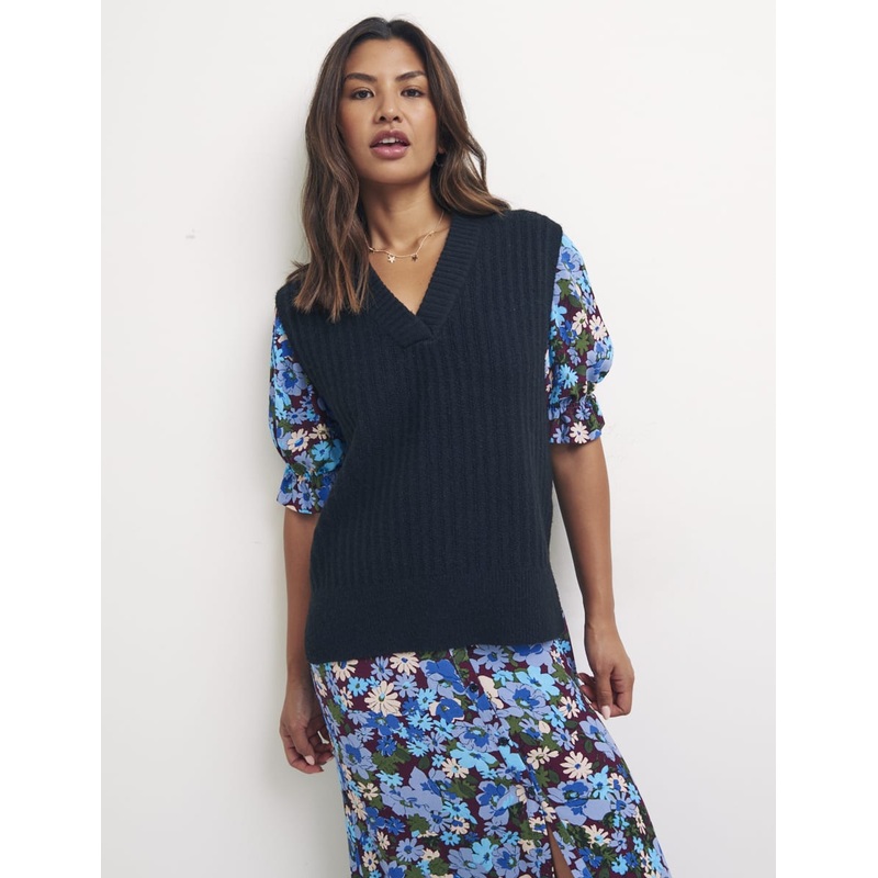 Our black tabard vest is shaped to a boxy oversized fit, with a flattering V-neck that layers all year round with tops, shirting and dresses. It's made from tactile ribbed knit with subtle side slits.V-neckRibbed knit