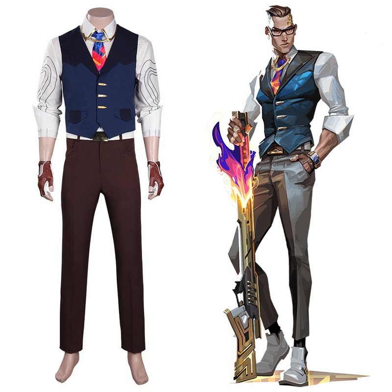 VALORANT Chamber Halloween Carnival Suit Cosplay Costume OutfitsMaterial: Elastic Leather + Lining + Shirt FabricsPackage included: Belt + Gloves + Necktie + Pants + Shirt + Vest