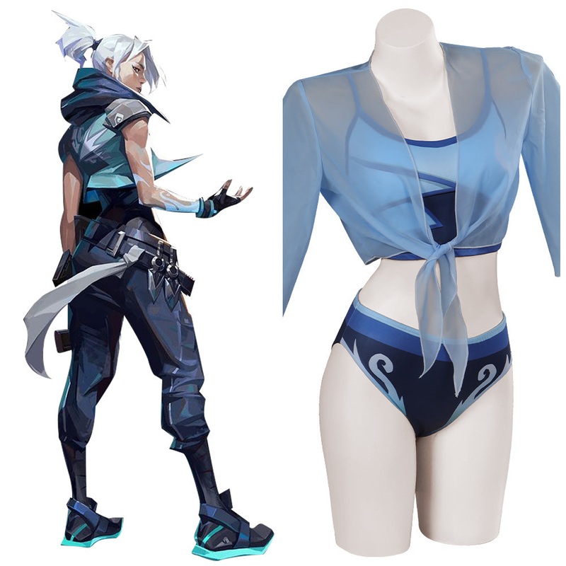 Valorant JETT Cosplay Costume Jumpsuit Swimsuit Cloak Outfits Halloween Carnival Party SuitMaterialMilk Protein Fiber + Pearl ChiffonPackage included:Top + cloak + shorts