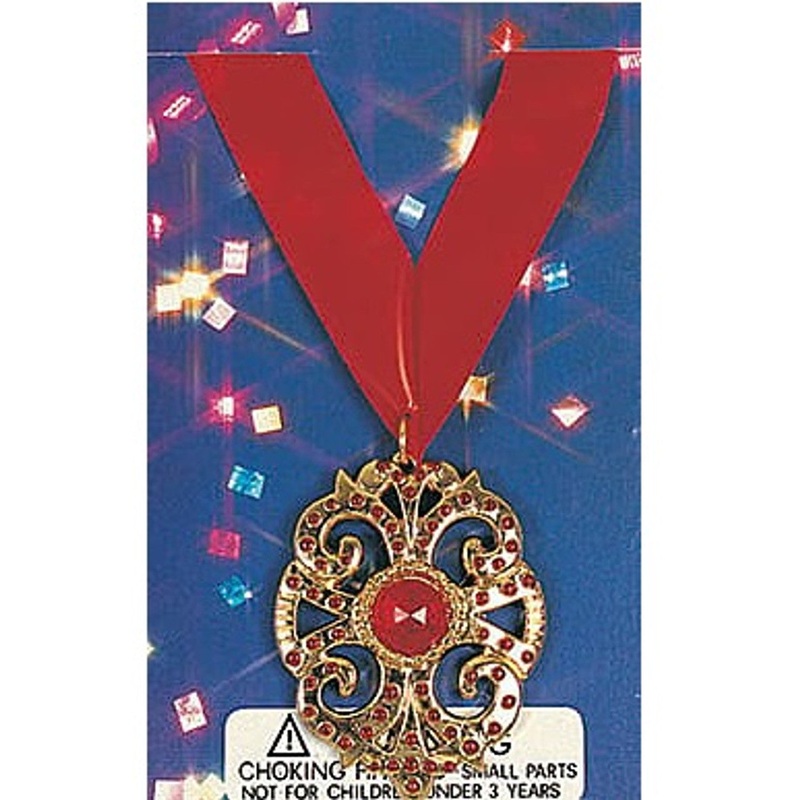 Rubie's Costumes Vampire NecklaceCreate a chilling look for your costume with this Vampire Necklace! This necklace features a metallic gold plastic medallion with faux red jewel accents attached to a red plastic neck ribbon. One size fits most.R50204