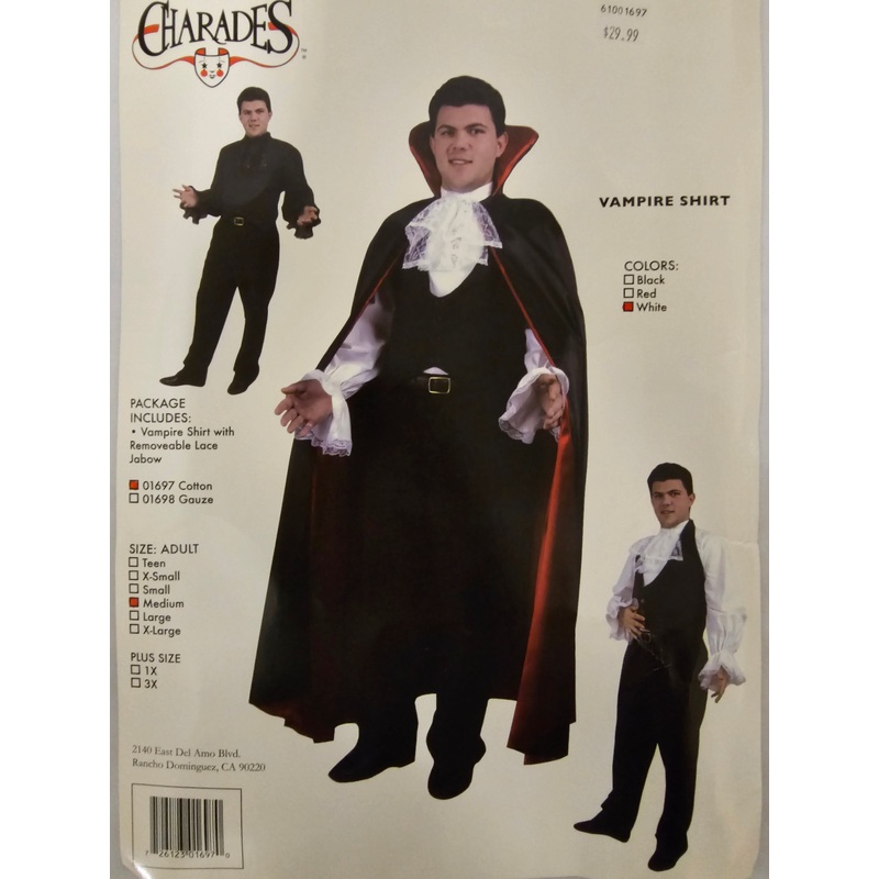 Includes: Vampire Shirt with Removable Lace JabotAdult MediumColor: Black or WhiteUW28612