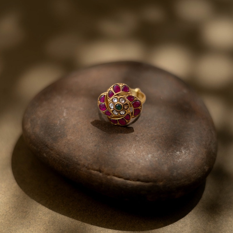 Material & Composition: Handmade 92.5 Sterling Silverand22ct GoldPlatedStones:White Kundan Stone, Green Kundan Stone and Red Kundan Stone .Each piece is lovingly crafted for the unique you! The few asymmetrical variations sighted are because they are tende