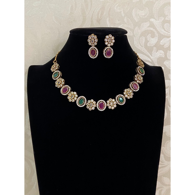 Be the first to review “Victorian ad necklace set | Simple necklace set Red & Green”