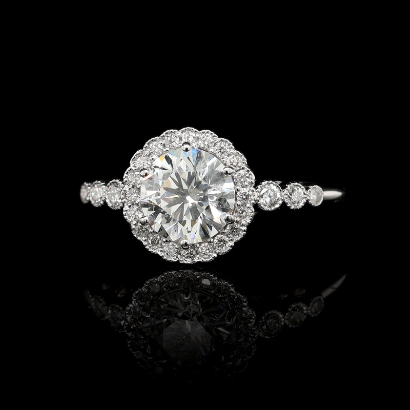 Vintage Style 14K White Gold Estate Diamond Engagement RingThe ring is set with one round brilliant cut diamond weighing 1.00cts. (actual), G/I1And 26 full cut diamonds, approx. .17cttw., H/SISize 6 1/4